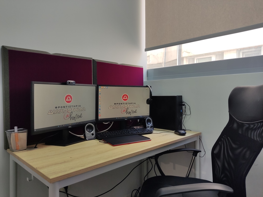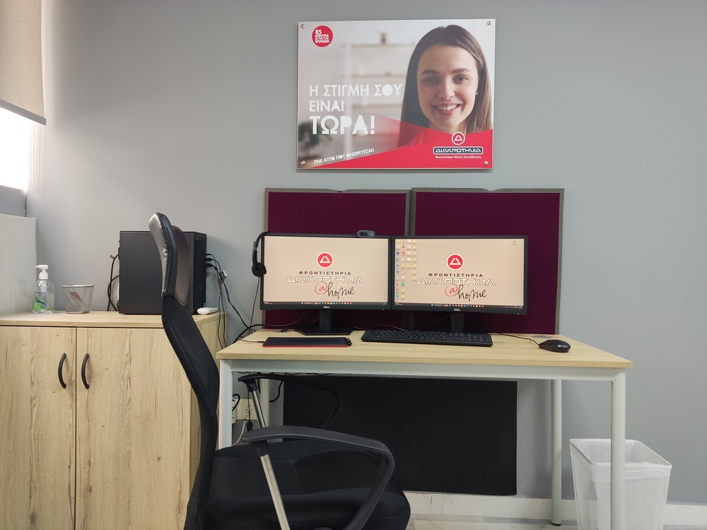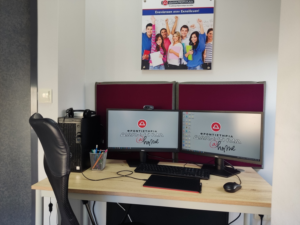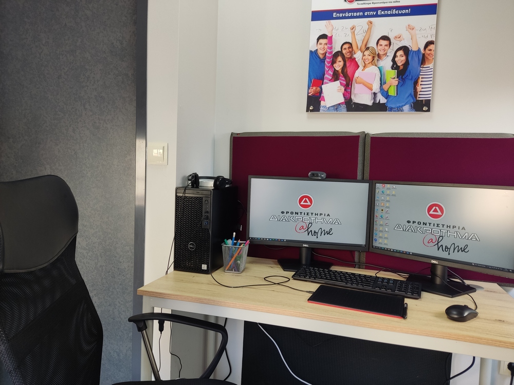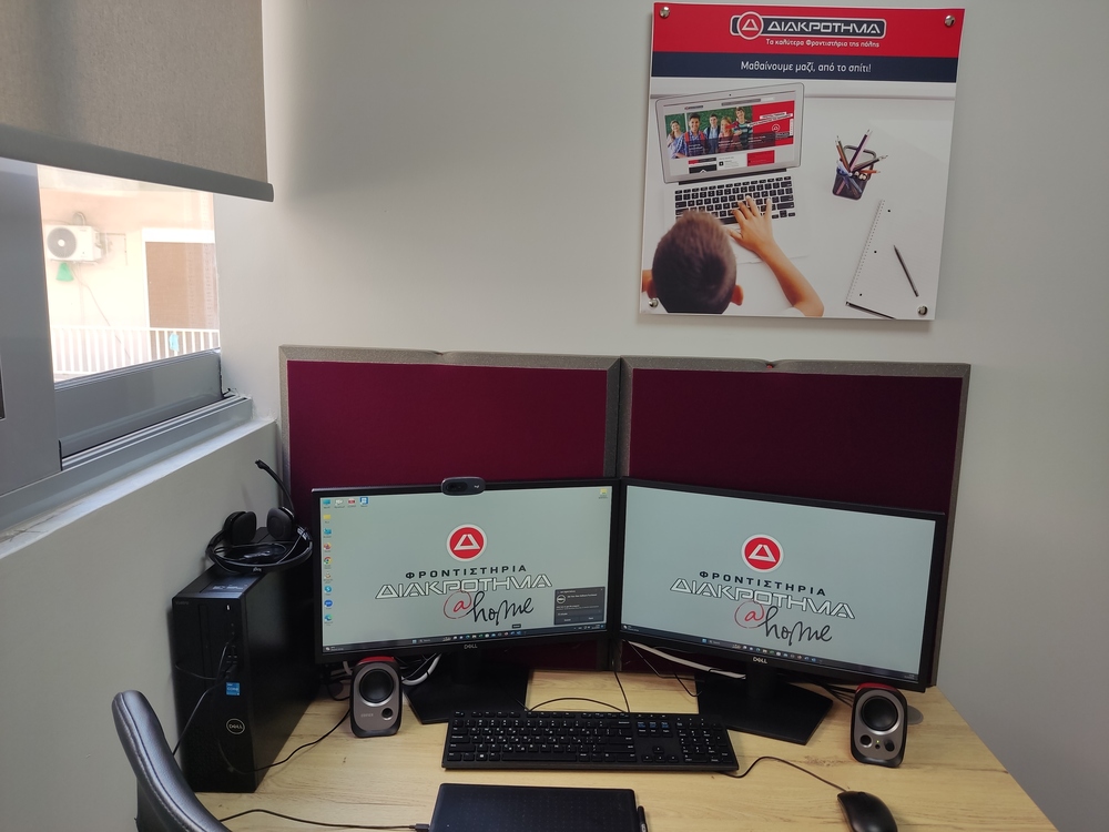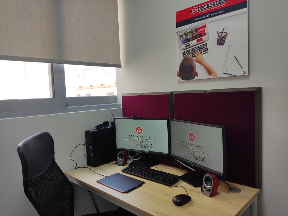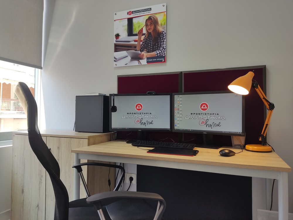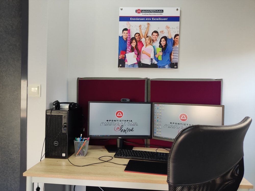 Το Διαδικτυακό Φροντιστήριο ΔΙΑΚΡΟΤΗΜΑ@home λειτουργεί σε έναν υπερσύγχρονο χώρο στην καρδιά του Πειραιά με ευρύχωρες και άνετες αίθουσες για τους Καθηγητές μας ώστε να μπορούν να απολαμβάνουν την Διαδικτυακή εμπειρία του μαθήματος τους.