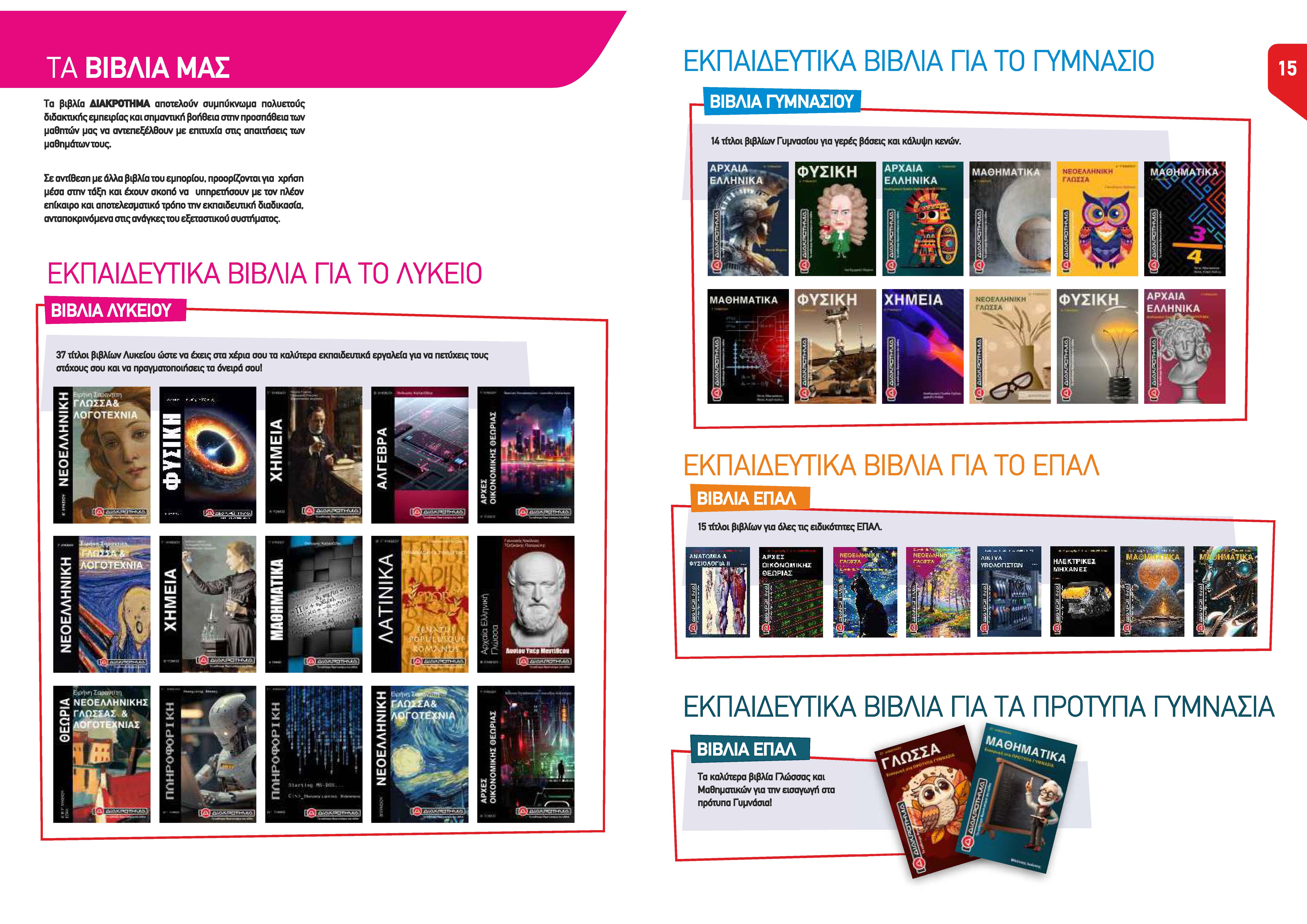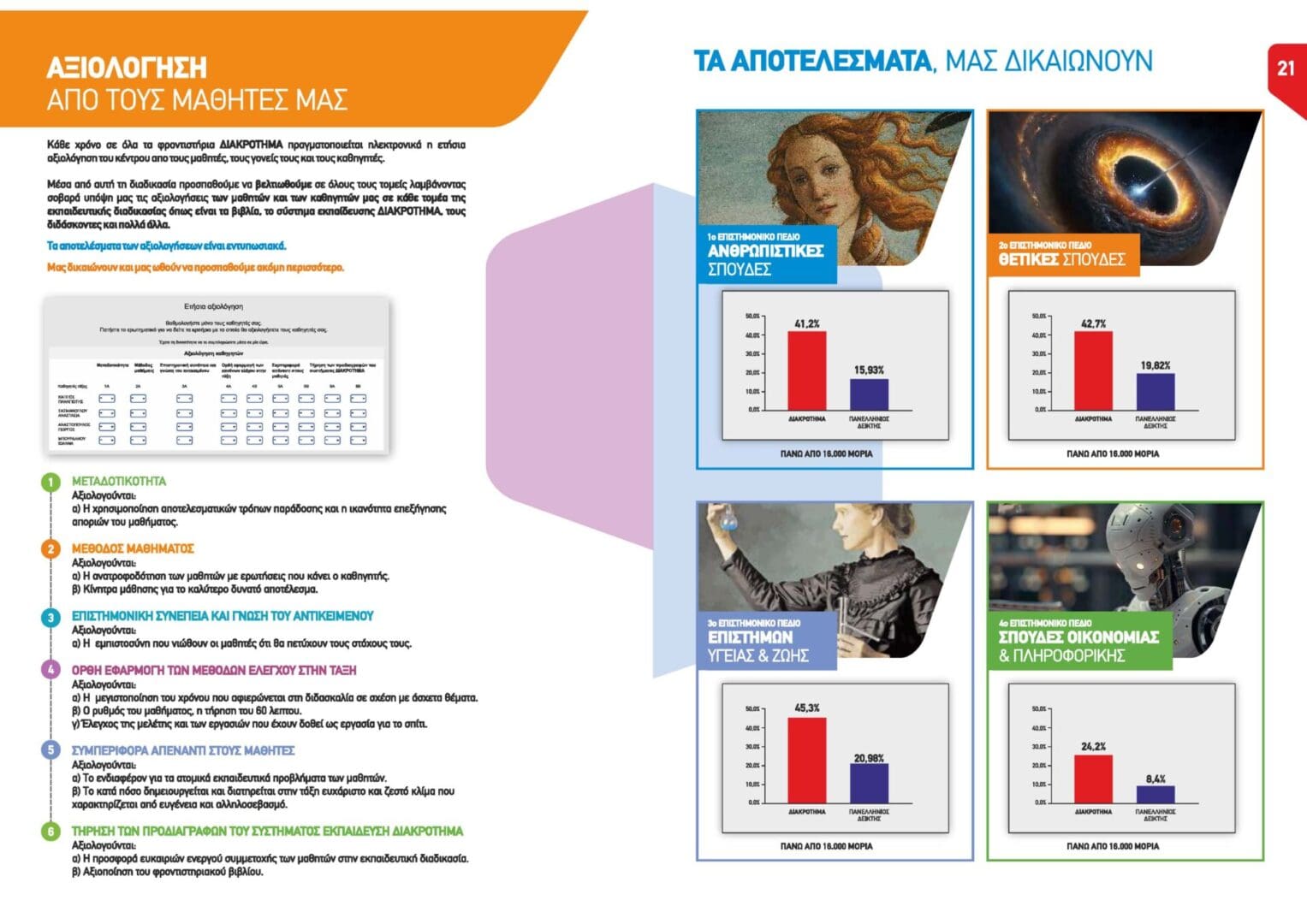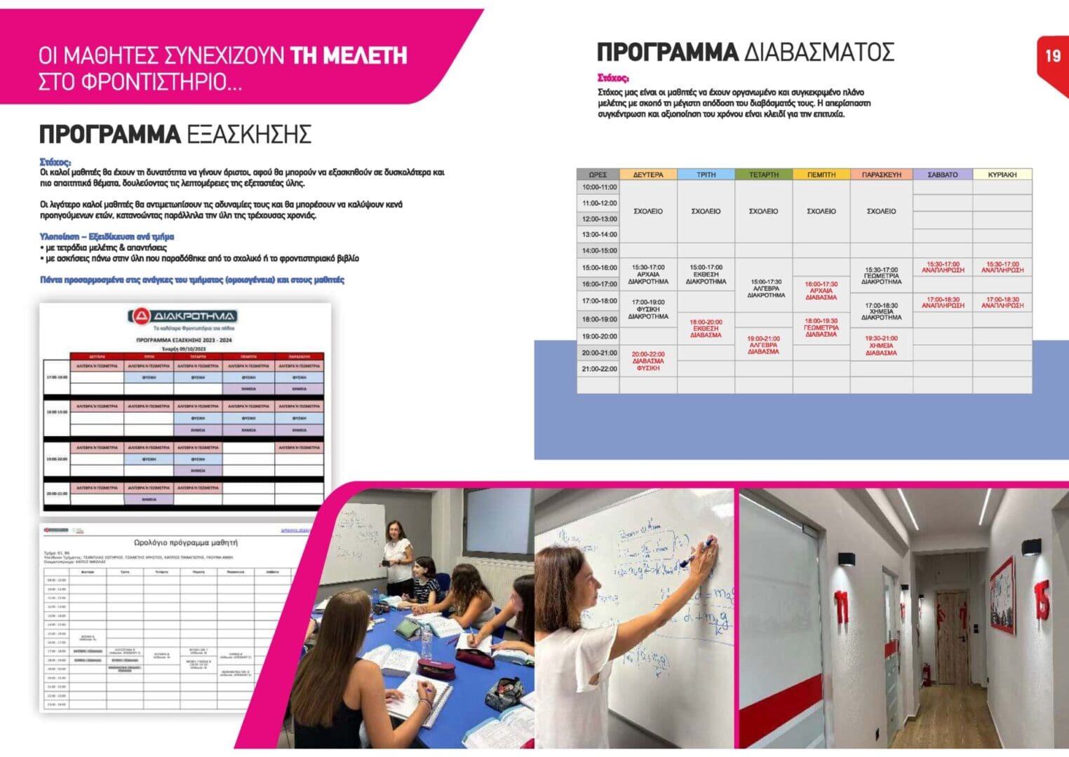 - Βιβλία ειδικής προετοιμασίας εκδόσεων ΔΙΑΚΡΟΤΗΜΑ και επιπρόσθετο υποστηρικτικό υλικό (με κωδικούς e-learning και e-μαθητής) παραλαμβάνονται από τους μαθητές και τους γονείς τους μέσα στο πρώτο δεκαήμερο της εγγραφής τους.